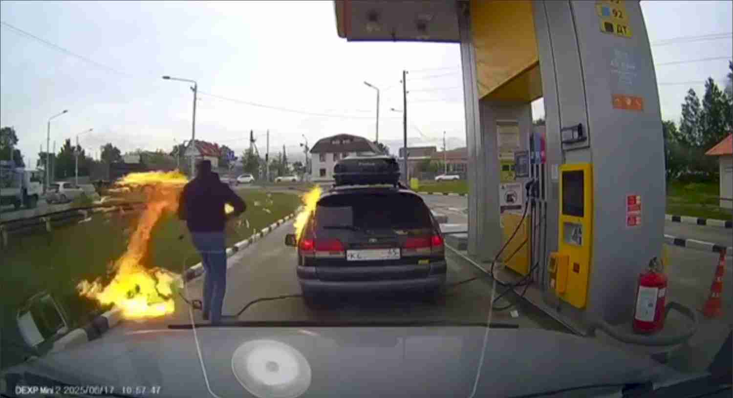 Сверхразум в России попытался зажигалкой спалить наклейку на крышке бензобака прямо во время заправки. Результат на фото. Последствия не уточняются.