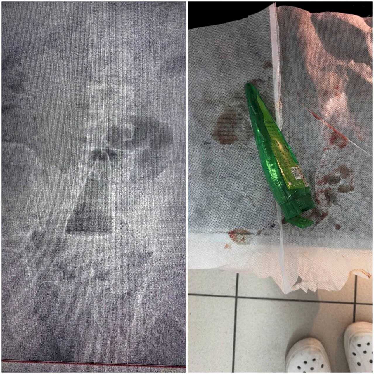 У мужчины из задницы достали большую бутылку с гелем алоэ вера.