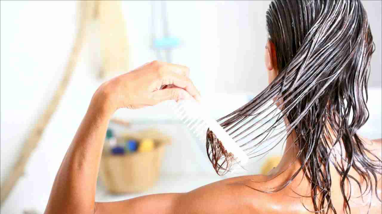 В небольшой бутылочке от использованного шампуня смешать яблочный уксус с водой в соотношении 1:4. По желанию можно добавить 2-3 капли эфирных масел розмарина, мяты или лаванды. Нанести кондиционер на волосы, подержать 3-4 минуты, после чего смыть прохладной водой. Бутылочку с приготовленным средством можно хранить в ванной комнате и использовать ещё несколько раз.