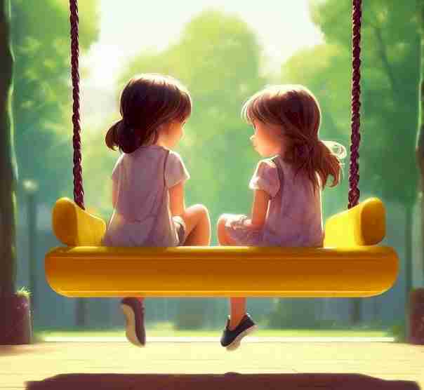 Детская площадка. Две девочки качаются на качелях и ведут неторопливую, светскую беседу.