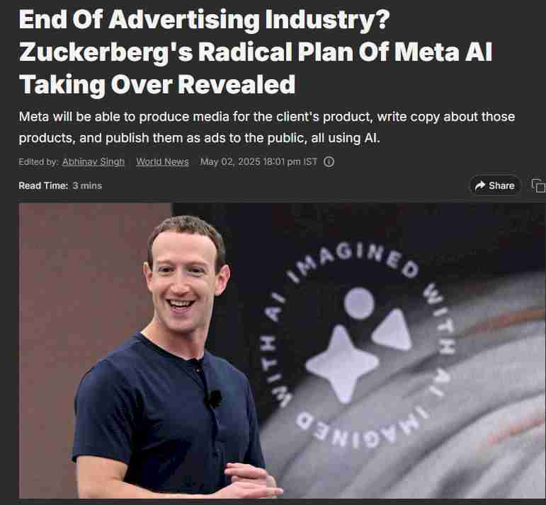 В интервью для Stratechery он прямо заявил: в будущем бизнесу не потребуется ни креатив, ни таргетинг, ни аналитика. Новая модель ведения рекламы в соцсетях по Цукербергу:
