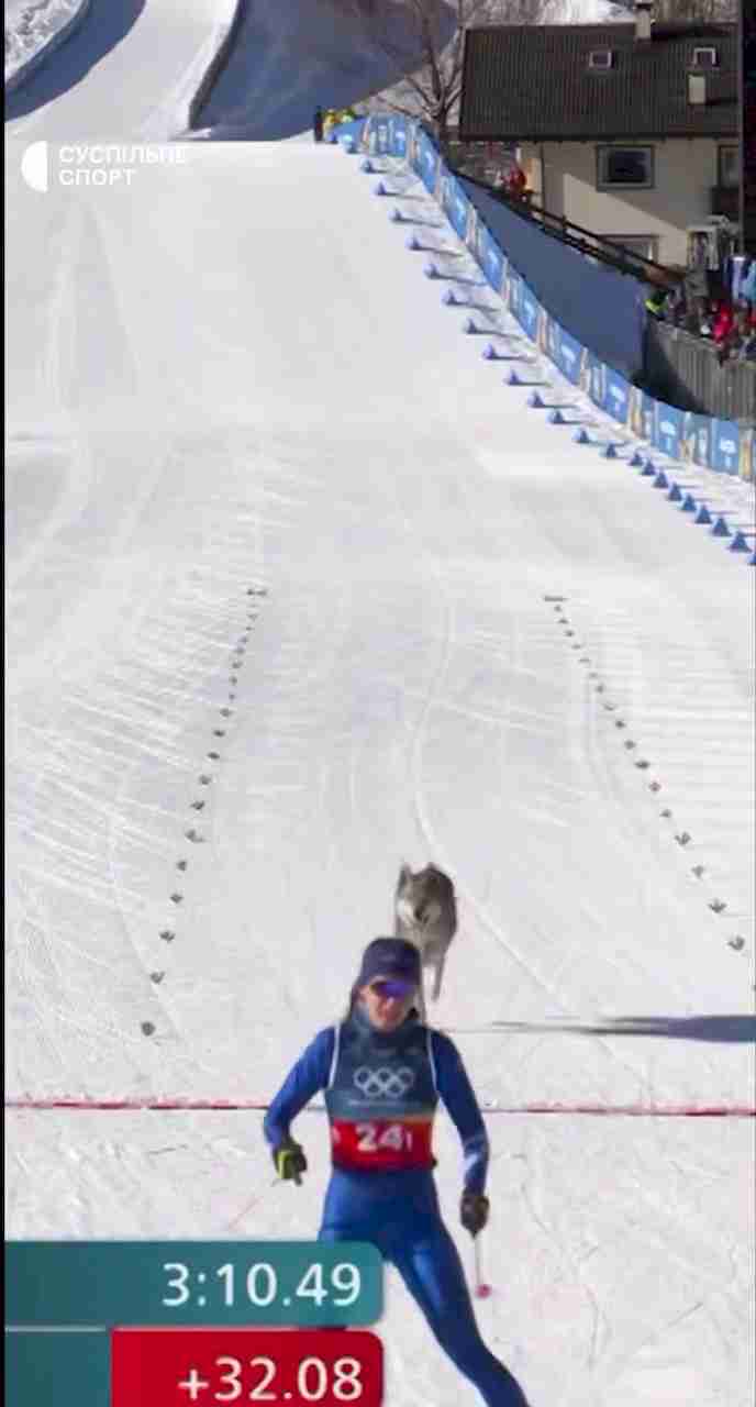 Собака присоединилась к лыжному спринту на Олимпиаде и даже попала в камеру на финише!
