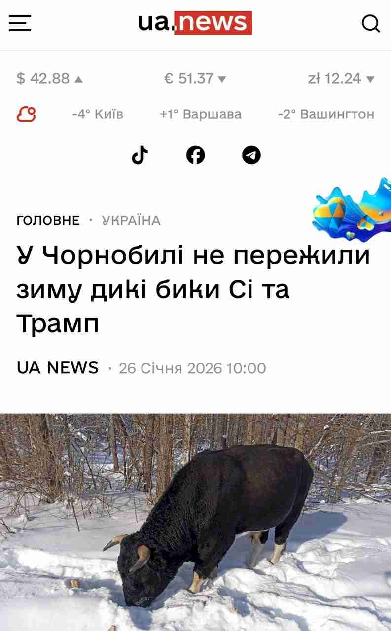 Умерли Трамп и СИ: быки с такими кличками не пережили зиму в зоне отчуждения в Чернобыле.