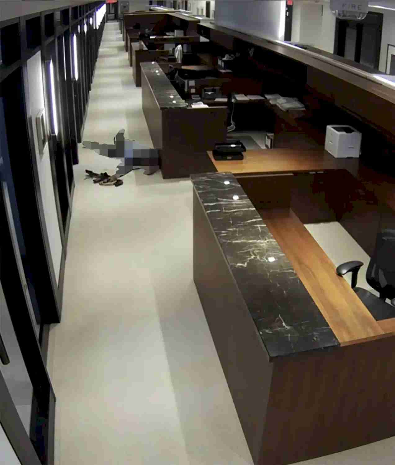 Одинокий стрелок не остановился — он пошёл к лифтам и выстрелил в охранника, который прятался за стойкой, добавили в полиции.