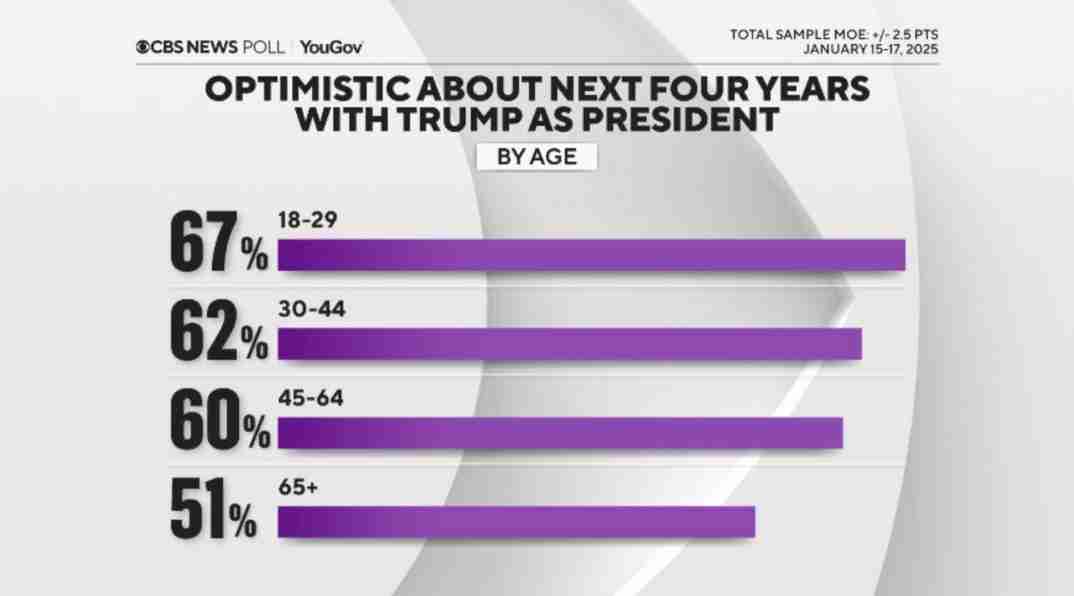 Доля оптимистично настроенных в отношении Трампа жителей США по возрастам.